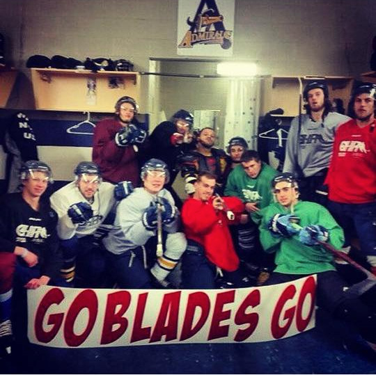 An image appeared on Instagram recently, showing the Amherstburg Admirals in their team dressing room with a “Go Blades Go” sign, that is usually found as an entrance sign to the community of Blenheim.