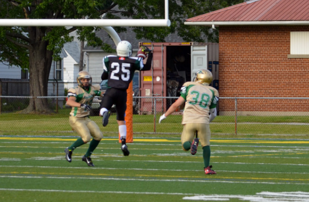 Playing both ways in the Cougars’ 27-19 loss to the Forest City Thunderbirds, Baylis had 6 catches for 149 yards and one touchdown, including an exciting 86 yard reception, as well as 63 yards on four carries.