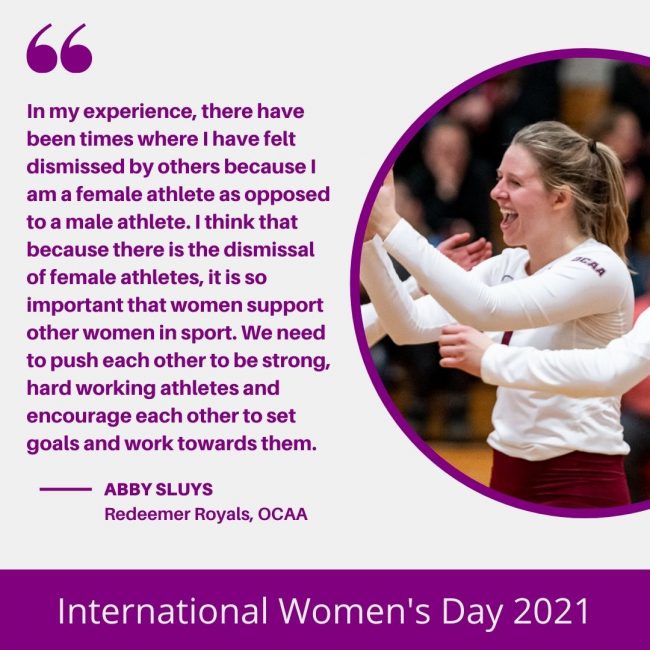 Here is Sluys’ message to other women’s athletes for International Women’s Day: