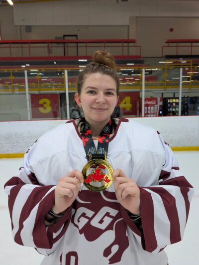 Audrey MacKay-Barr, helped backstop the University of Ottawa ringette team to a pair of championships this season.